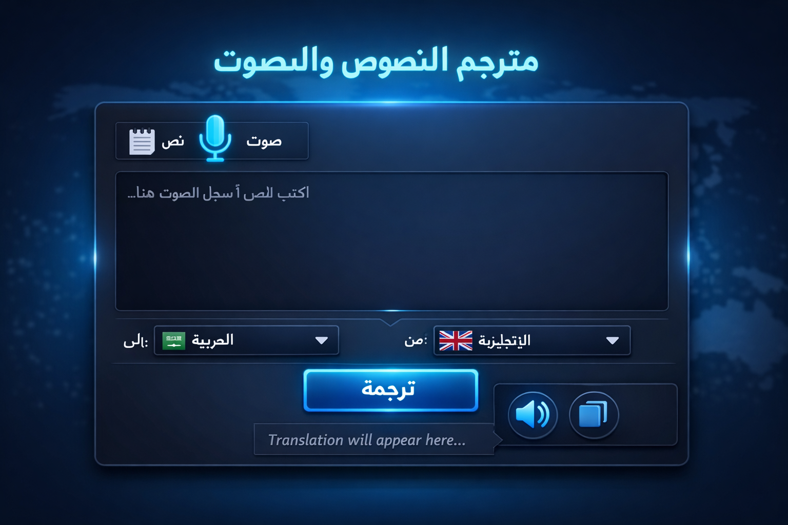 ملاحظة: التعرف على الصوت يعتمد على دعم المتصفح، وقد يعمل أفضل في